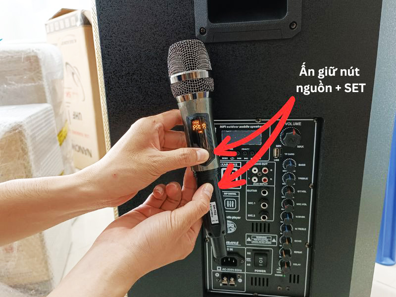- Bước 4: Bật micro và thiết bị thu sóng. Kiểm tra tần số của micro và thiết bị thu sóng xem có khớp nhau không.